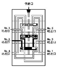 | 7、流入的潤(rùn)滑劑推動(dòng)活塞A 向右運(yùn)動(dòng)、右腔的潤(rùn)滑劑壓向NO.6吐出口,經(jīng)外部配管送向潤(rùn)滑點(diǎn)。當(dāng)活塞A移動(dòng)到至右極限時(shí)返回到初始1狀態(tài),繼續(xù)重復(fù)上述動(dòng)作。 |
