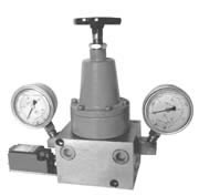 本閥為二位四通自動液壓換向閥,上平面設(shè)有兩塊壓力表和調(diào)壓手輪。換向壓力由手輪調(diào)節(jié),順時針壓力升高,反之壓力降低。本閥門進油口P與泵出油口連接,回油口R接貯油桶,供油口Ⅰ、Ⅱ分別與兩條供油管路連接。工作時當(dāng)Ⅰ路油壓達設(shè)定壓力,換向閥自動切換到Ⅱ路,這樣潤滑泵就能循環(huán)往復(fù)地向兩條管路供送潤滑脂。