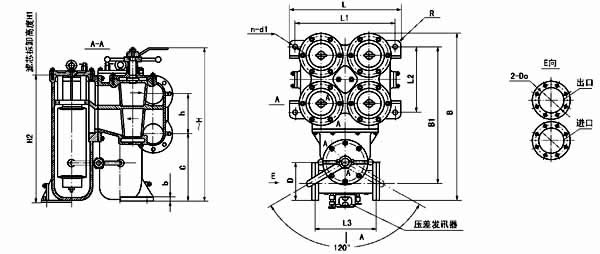 | 法蘭標(biāo)準(zhǔn):GB573-65(可根據(jù)需要確定):DN100、150-3 組濾芯組件 DN200-4 組濾芯組件;壓差發(fā)訊器為選配件。 |