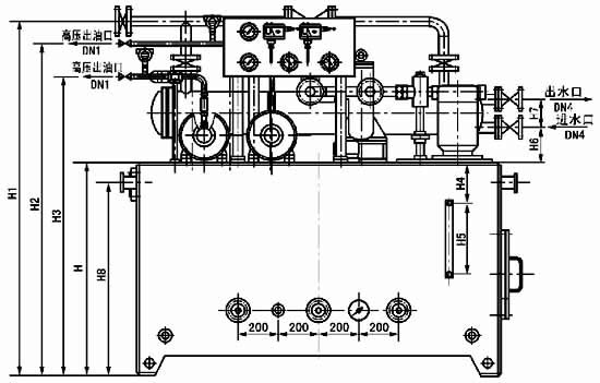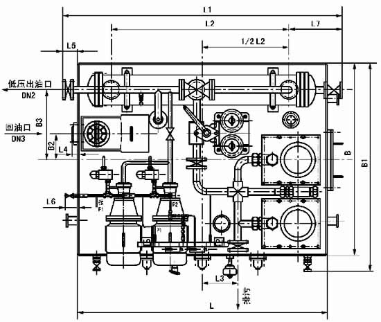 雙高壓高(低)壓稀油站的主要特點為一套稀油站有二根高壓輸出管道,可滿足二個高壓潤滑點的需要,其他和普通高(低)壓稀油站相同。